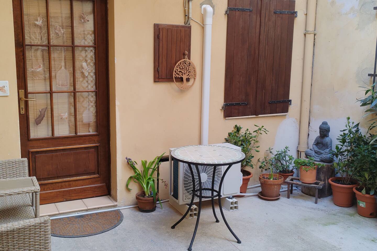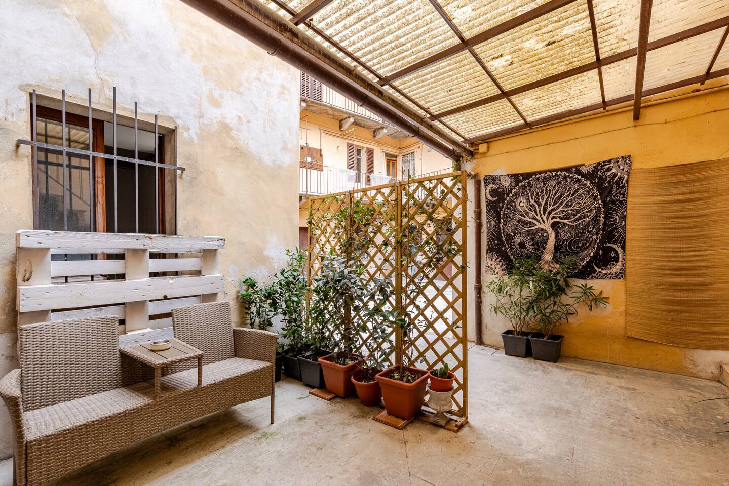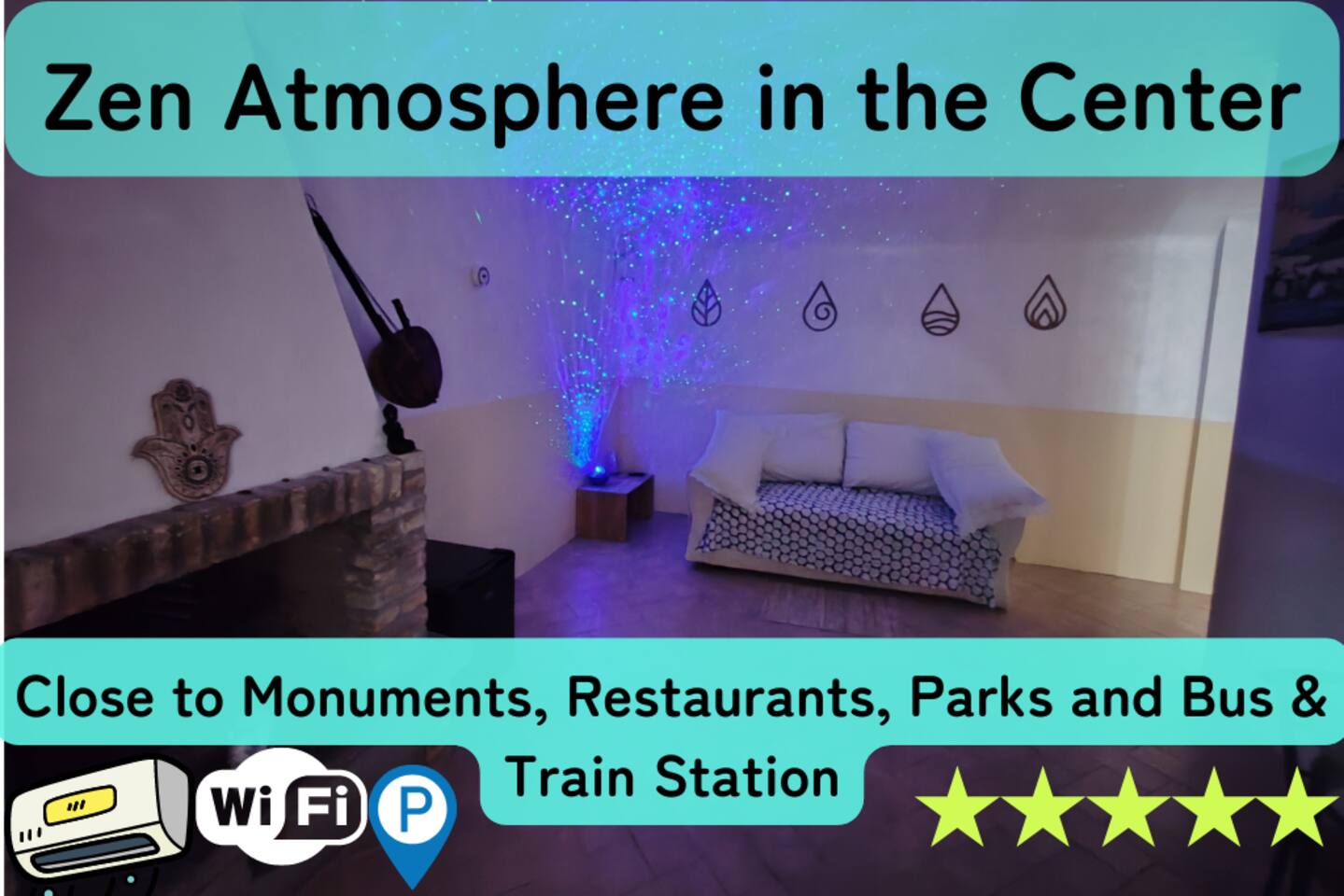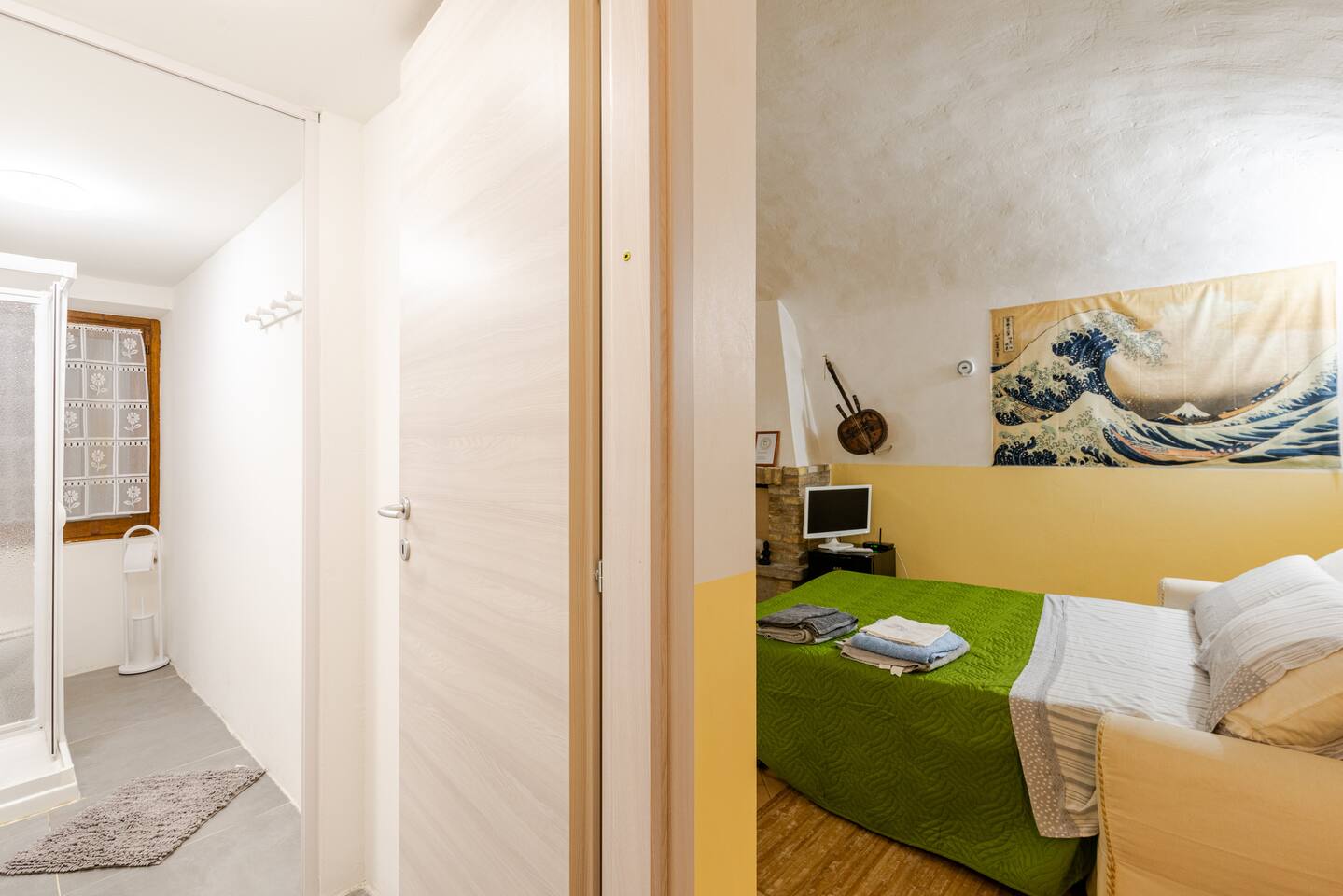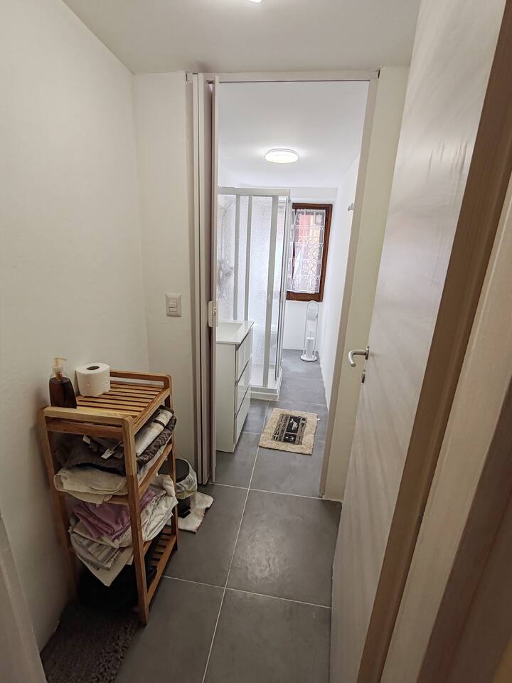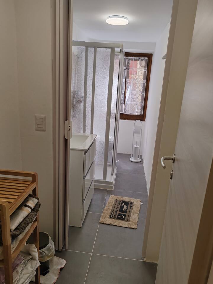 The house has just been renovated and has a unique atmosphere, with a zen flavor. It is located just in front of the gardens, where you can either train and play sports, or bring your children. It has a parking lot right in front, which is completely free. The apartment is located in a semi-detached house of 3 floors, very quiet, located in the center of Casale Monferrato. The apartment is located on the ground floor, ensuring easy access to all. There is a dehor where you can relax. You are welcomed in a very special "open-space" environment, furnished and decorated in Zen style that will help you to enter the zen atmosphere and relax in your oasis of peace. Here are various objects, such as a fountain from which you can hear the sound of water, and a space projector, which will allow you to project the aurora borealis and much more. There are also many accessories such as coffee machine, snacks and all the amenities of a kitchenette. There is also a table with two chairs where you can eat and work with your laptop. Fireplace There is a beautiful stone fireplace "Tufo". The Tufo is the typical stone of Monferrato, which is extracted from nearby caves. There is also a fridge to store your favourite drinks and food. REFRESHMENT CORNER: There is a refreshment corner with microwave, coffee machines and more. After the refreshment corner, there is a large bathroom that you can use to change. BATHROOM: There is a long bathroom complete with all the amenities and accessories to refresh you and make your stay comfortable. AIR CONDITIONING, HEATING AND WIFI: The house is equipped with independent heating, air conditioning and Wi-Fi internet.